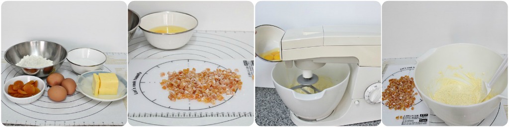 - Dice dried apricot and mix with 1 teaspoon plain flour, set aside.