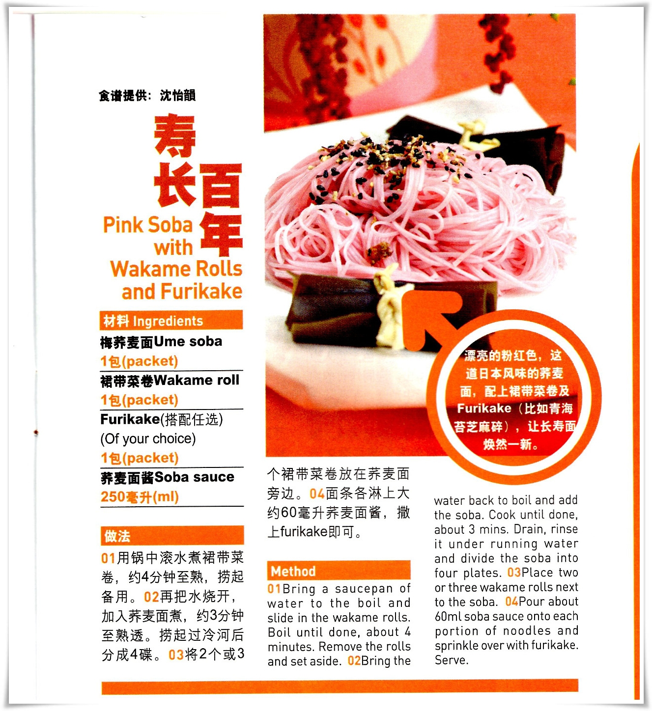Hi Friends, Here is an interesting recipe using Morikawa Ume Soumen that I would like to share with all of you. I got this recipe from a TV magazine before Chinese New Year and the Pink Soba looks so beautiful, I think some of you might like to try this recipe. (updated 14/Oct)