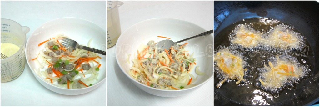 I love to make Prawn Fritters with Veggie at home especially serve as Japanese set meal. It is not oily with only salt and pepper as seasoning. You can also serve this as finger food for children’s party too.
