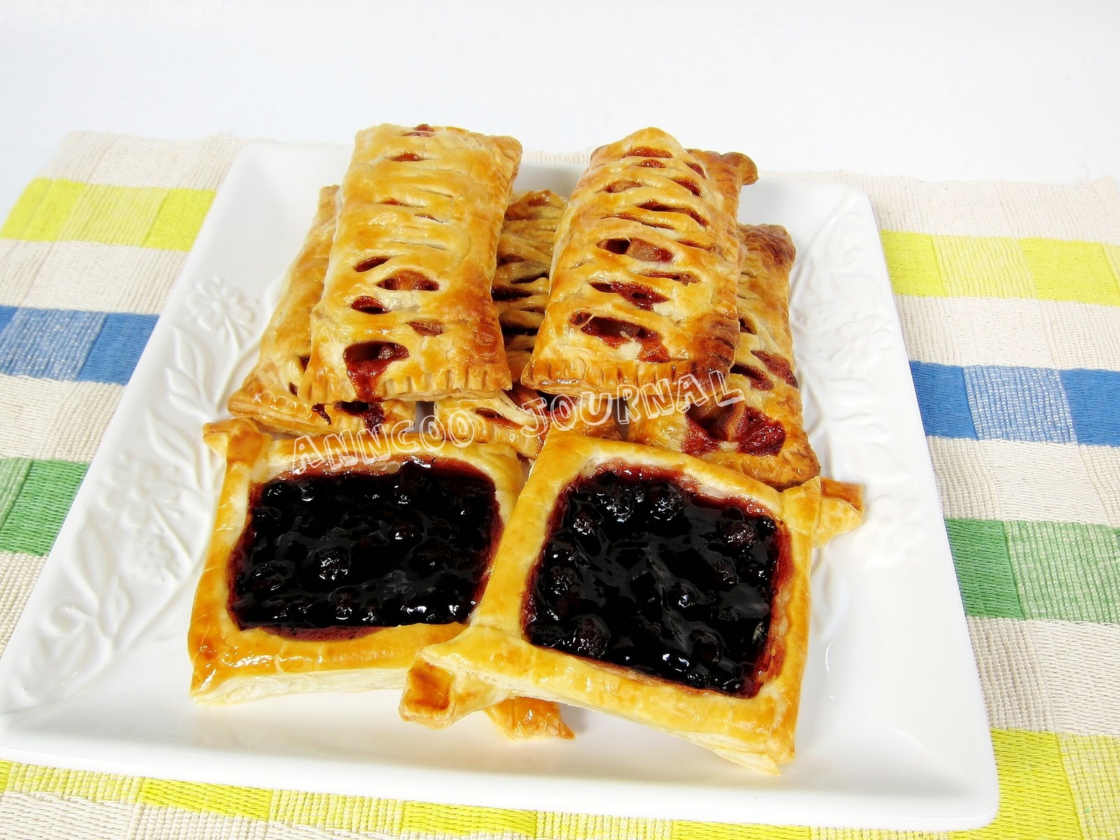 As I still have two pastry sheets left, I finished it off with some blueberry filling. No recipe, just follow the steps below.