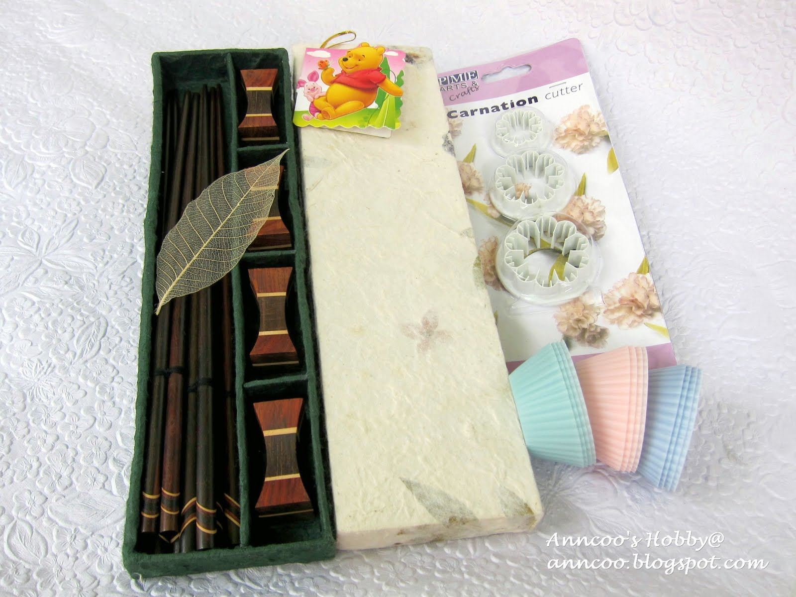 What a nice package you got! Those chopsticks are beautiful! I love the carnation cutter, can't wait to see what you do with it.